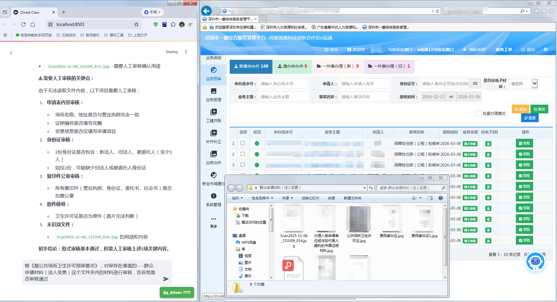 在河套“e站通”综合服务中心,以往,申请人办理公共场所卫生许可变更的申请,线上提交资料后,需等待工作人员在1个工作日内完成人工预审,才能到线下窗口办理。